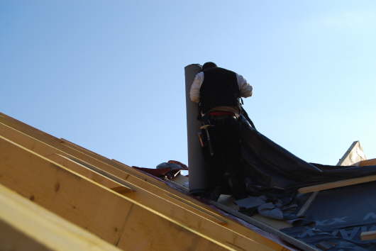 Die ersten Bahnen Delta-Folie liegen schon.