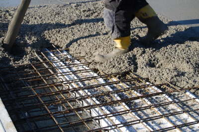 Die letzten Meter Beton werden eingebracht. Man sieht darunter noch die Fußbodenheizung.