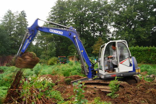 Mit der großen Schaufel ist das Gras schnell entfernt.